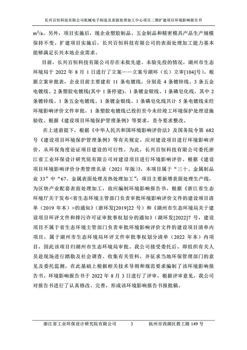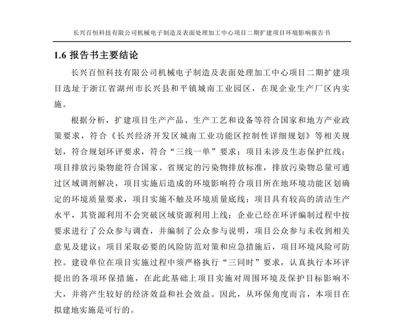 更多完整版詳情請(qǐng)下載文件預(yù)覽 “ 長興百恒科技有限公司機(jī)械電子制造及表面處理加工中心項(xiàng)目二期擴(kuò)建項(xiàng)目 環(huán)境影響報(bào)告書 ” |